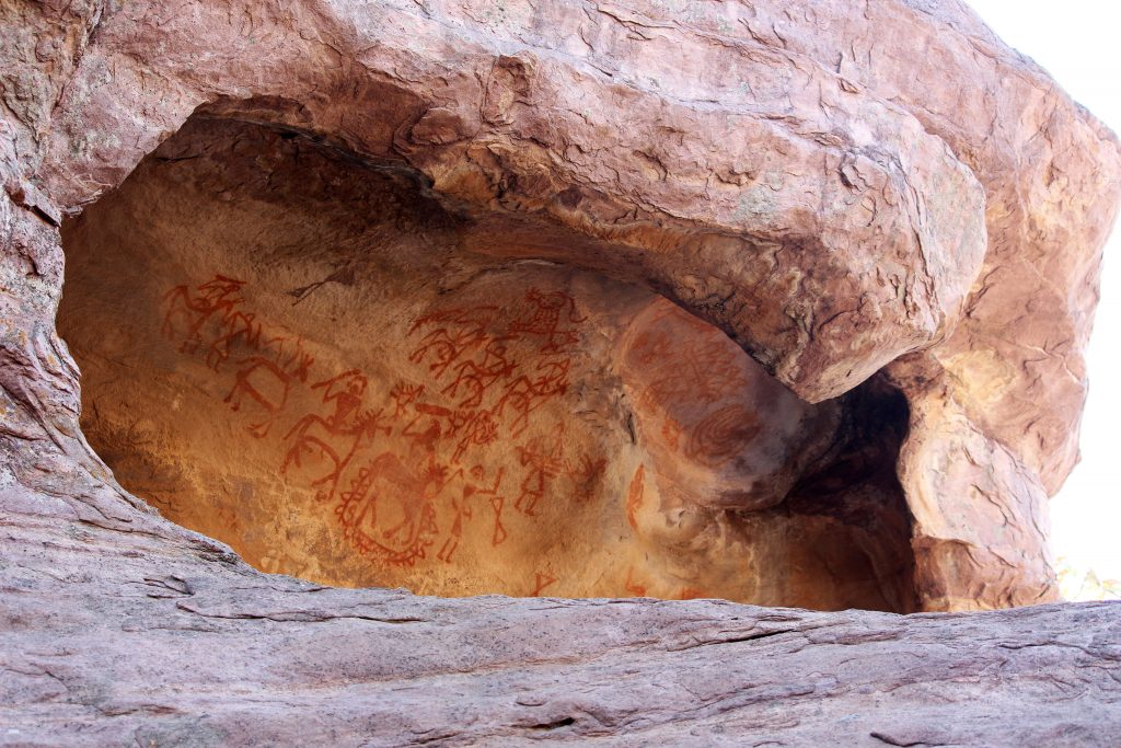 Image of a tiger painted some 10,000 years ago in the Bhimbetka rock shelters in India